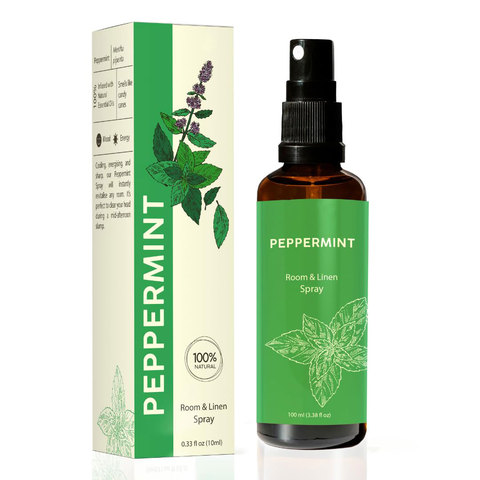 Confezionamento personalizzato a basso contenuto di MOQ deodoranti per ambienti alla menta piperita linea Spray per camera da letto con aromaterapia da 100ml per alleviare lo Stress della nebbia